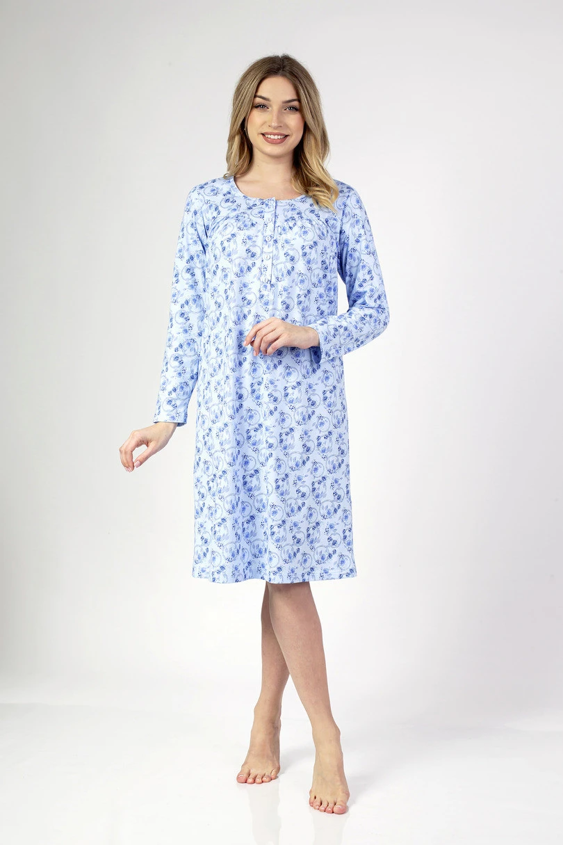 Dámská košile z kvalitní bavlny. Výstřih na knoflíky, mírně nařasený sed, dlouhý rukáv.