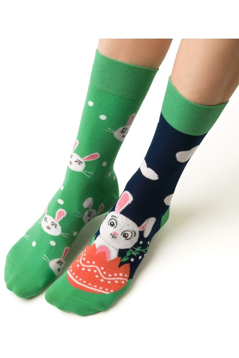 Pánské asymetrické velikonoční ponožky 079 jsou ideální volbou pro ty, kteří se rádi stylově odlišují a vnášejí do každodenního stylingu trochu humoru. Barevné vzorované ponožky s velikonočním motivem jsou ideální jako součást svátečního outfitu i jako originální velikonoční dárek.