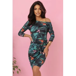 Sportovní šaty s lodičkovým výstřihem a tropickým 3D vzorem listů a motýlů. Pohodlné, pružné a stylové - ideální na léto. polský výrobek: Numoco.