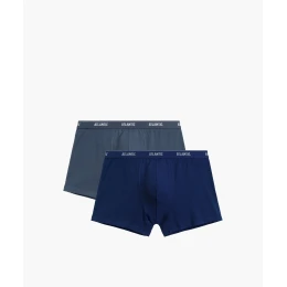 W dwupaku znajdują się bokserki męskie w kolorze niebieskim i ciemno-niebieskim. Bokserki o sportowym kroju odznaczają się niskim stanem, wykończonym miękką i nieuciskającą gumą zewnętrzną z napisami Atlantic oraz uniwersalnej długości nogawkami.