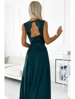 211-6 Dlouhé šaty LEA s krajkovým výstřihem - BOTTLE GREEN