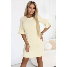 217-12 NEVA Dámské trapézové šaty s vázáním na rukávech - pastelově žluté