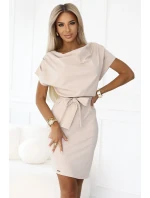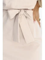 Elegantní béžové šaty značky Numoco z elastického, vysoce kvalitního materiálu. Ideální pro každodenní nošení, do práce, na večírky i elegantní večeře. Minimalistický střih se zavazováním v pase krásně zvýrazní siluetu. Polský výrobek.