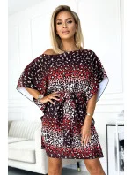 SOFIA - Dámské motýlkové šaty s jaguářím vzorem a se zavazováním v pase 287-23