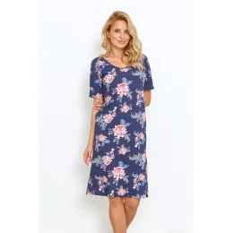 Dámské tričko s krátkým rukávem ušité z kvalitní vzorované bavlny. Volné tričko, kulatý výstřih, délka ke kolenům.