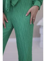 Dvoudílný plisovaný komplet skládající se z košile a kalhot je elegantním a zároveň moderním outfitem. Košile z jemného materiálu s plisovanou texturou dodává jemnou texturu. Klasický střih košile s knoflíky a límečkem zdůrazňuje formálnost a eleganci celého kompletu. Kalhoty, rovněž řasené, tvoří s košilí soudržný celek. Díky volnému střihu jsou pohodlné a zároveň elegantní. Plisování jim dodává lehkost a dodává jedinečný charakter. Elastický pas nebo doplňkové zavazování v pase může být praktickým prvkem, který pas také zvýrazní. Tato kompletní plisovaná sada je ideální pro zvláštní příležitosti, obchodní jednání nebo elegantní výlety. Toto je nabídka pro lidi, kteří oceňují vytříbený styl a chtějí vypadat elegantně a zároveň si zachovat jistou míru modernosti. Velikost je univerzální a padne ženám, které nosí velikost S, M nebo L.
