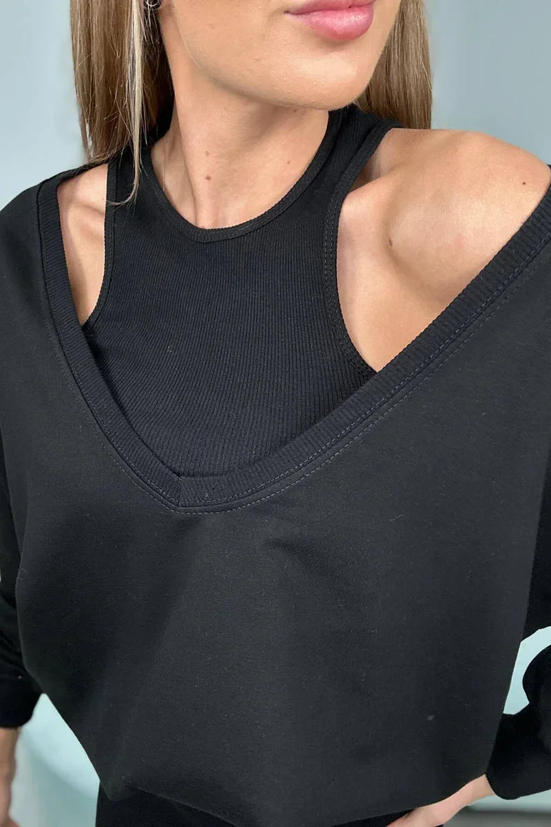 Představujeme vám třídílnou sadu. Souprava se skládá z mikiny, přiléhavého žebrovaného topu a legín s vysokým pasem. Nahoru a legíny jsou vyrobeny z žebrovaného materiálu. Sada je vyrobena z vysoce kvalitního materiálu. Velikost je univerzální a vyhovuje dámám velikosti S nebo M.
