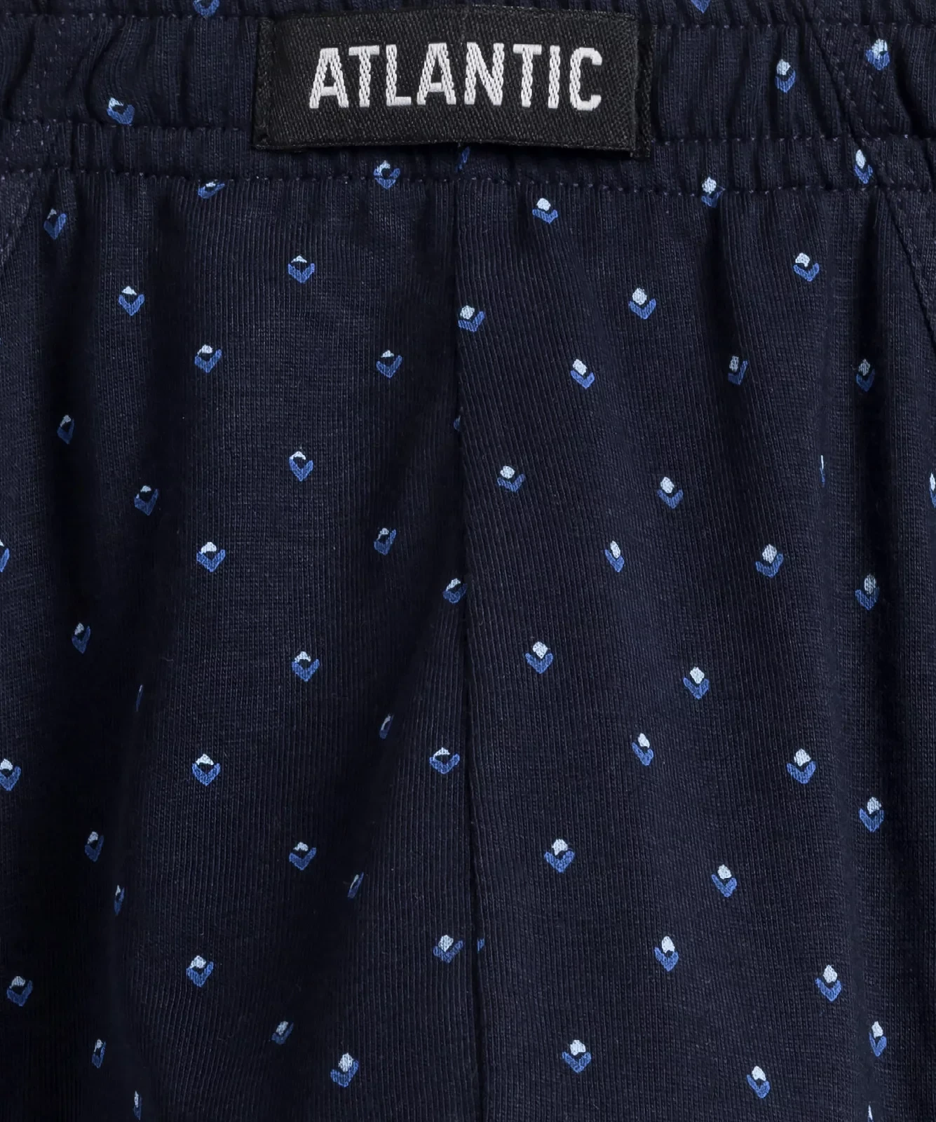 W trzypacku znajdziesz slipy męskie w kolorze granatowym, ozdobione maleńkich rozmiarów graficznymi wzorkami. Slipy o klasycznym kroju mają dość szerokie boki oraz średniej wysokości talię wykończoną miękką i nieuciskającą gumą wewnętrzną.
