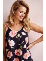 Dámské spodní tričko s úzkým páskem ušité ze vzorované jemné bavlny. Měkký špičatý výstřih, délka košile před kolena.