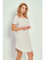 Noční košile s krátkými rukávy a otevřeným výstřihem. Spodní část košile je mírně zaoblená.