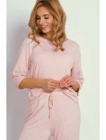 Dámské pyžamo s krátkým rukávem z jemné viskózy s příměsí lnu. Kulatý výstřih. 7/8 dlouhé kalhoty s ozdobným páskem
