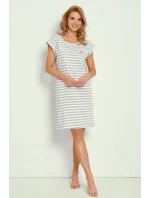Dámská košile s krátkým rukávem z jemné pruhované bavlny s příměsí polyesteru. Délka košile je pod kolena, s jemnými bočními rozparky.