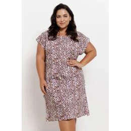 Damska koszula nocna 3361 Esti marki Taro to doskonały wybór dla kobiet ceniących komfort i modny wygląd. Wykonana w 100% z miękkiej, oddychającej bawełny, gwarantuje wygodę podczas snu. Stylowy zwierzęcy print dodaje jej charakteru, a klasyczny, okrągły dekolt i krótkie rękawy zapewniają swobodę ruchów. Koszula ma długość przed kolano, co czyni ją idealnym wyborem na każdą porę roku.