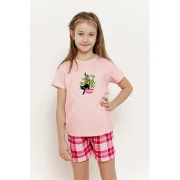 Letnia piżama dziewczęca Veronica od Taro to doskonały wybór na ciepłe noce. Wykonana z 100% miękkiej bawełny, zapewnia wygodę i komfort noszenia przez całą noc. Zestaw składa się z koszulki z krótkim rękawem, ozdobionej kolorowym nadrukiem, oraz krótkich wzorzystych spodenek, które dodają uroku i swobody ruchów. Delikatny i przewiewny materiał sprawia, że skóra dziecka oddycha, a piżamka jest niezwykle przyjemna w dotyku. Zapakowana w foliowy woreczek – idealna na prezent!