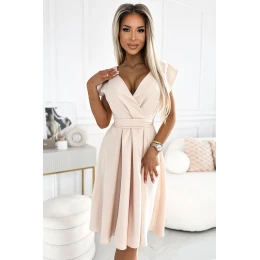 "Scarlett" jsou klasické, rozevláté šaty, ideální pro mnoho příležitostí. Mezi jejich charakteristické rysy patří elegantní výstřih a sladěný pásek, které zdůrazňují ženskou siluetu. Jsou vyrobeny z materiálu příjemného na dotek, který se skládá z 95 % polyesteru a 5 % elastanu, což zajišťuje nejen pohodlí při nošení, ale také lehkost a pružnost materiálu. Krásně se prezentují v tlumeném béžovém odstínu, který jim dodává univerzálnost a eleganci. Značka Numoco zaručuje vysokou kvalitu zpracování a skutečnost, že šaty jsou vyrobeny v Polsku, svědčí o vysoké kvalitě výroby a důrazu na detail.