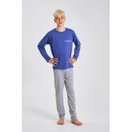 Piżama chłopięca EMIL 3506 to idealna propozycja na komfortowy i spokojny sen dla chłopców w wieku szkolnym. Zestaw składa się z koszulki z długim rękawem oraz długich wzorzystych spodni. Koszulka została wykonana w 100% z miękkiej, oddychającej bawełny, a jej front zdobi efektowny nadruk, który przypadnie do gustu młodszym użytkownikom. Spodnie wykonano z bawełnianej dzianiny z domieszką poliestru, co zapewnia większą trwałość i elastyczność. Wygodna gumka w pasie nie uciska i gwarantuje idealne dopasowanie. Piżama EMIL to połączenie stylu, jakości i wygody – stworzona z myślą o codziennym komforcie dziecka.