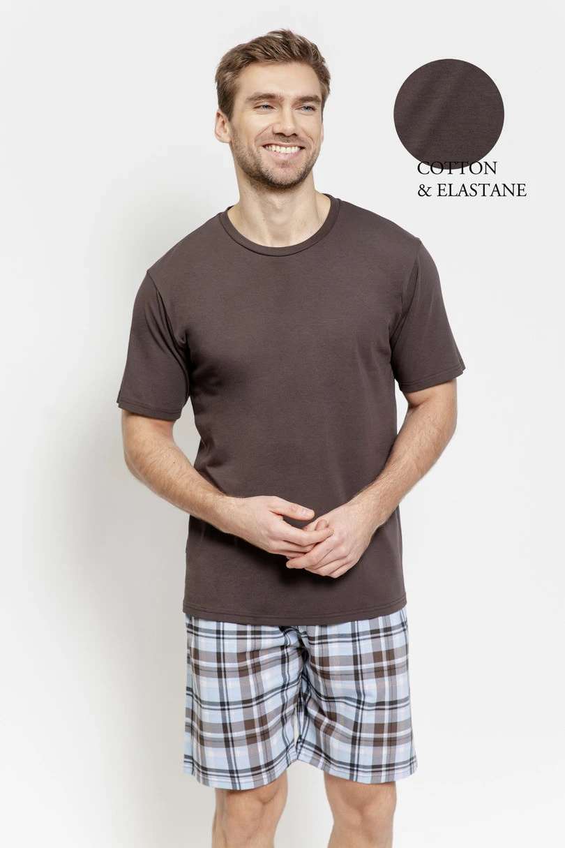 Souprava je doplněna krátkými šortkami v klasickém kostkovaném vzoru, které jsou vyrobeny ze 100% bavlny. Šortky mají elastický pás lemovaný bavlnou, který zvyšuje pohodlí a zabraňuje otlakům během spánku.