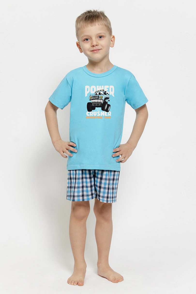 Chlapecké pyžamo Oliver značky TARO je pohodlná a barevná souprava ideální pro aktivní chlapce. Souprava se skládá z trička s krátkým rukávem a krátkých kostkovaných šortek, takže je ideální pro teplejší noci a domácí lenošení.