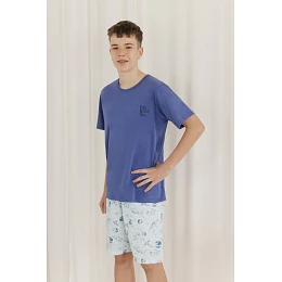 Chlapecké pyžamo Orion 3605 značky TARO je pohodlná a moderní souprava ideální pro teplé noci. Souprava se skládá z trička s krátkým rukávem a krátkých šortek pro pohodlí a volnost pohybu během spánku i doma.