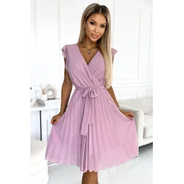 Polina - šifonové šaty s výstřihem a volánky na ramenou. barva: špinavě růžová. značka numoco. polská výroba.