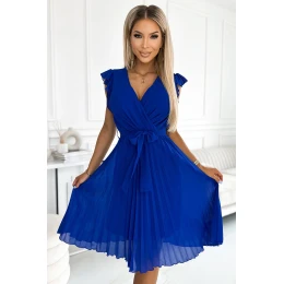 Polina - šifonové plisované šaty s výstřihem a volánky na ramenou. barva: chrpová. značka numoco. polská výroba.