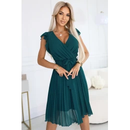 374-8 POLINA Plisované šaty s výstřihem a volánky - ZELENÉ