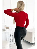 Obálkové body v červené barvě. Hluboký výstřih ve tvaru V zvýrazňuje poprsí a dodává ženskost. Díky elastické a na dotek příjemné tkanině lze halenku / body pohodlně nosit po celý den. Lze kombinovat se sukní i kalhotami na míru. značka numoco. polská výroba.