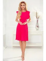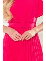 LAYLA - Dámské plisované šaty v malinové barvě s opaskem 396-2