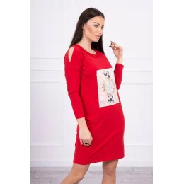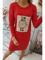 3D grafické šaty s perlami červené