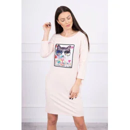 Představujeme vám módní šaty. Šaty má našitou grafiku s kočkou. Šaty mají kapsy. Ideální pro každodenní použití. Ve vašem šatníku rozhodně nesmí chybět. Šaty jsou vyrobeny z vysoce kvalitního materiálu. Velikost je univerzální a vyhovuje dámám, které nosí velikost S, M nebo L.
