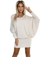 4. 402-7 Svetr teplé netopýří šaty s výstřihem - béžové