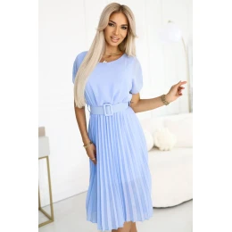 465-4 MIA Plisované šifonové midi šaty se širokým páskem - MODRÁ