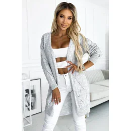486-1 Cardigan - svetr s prodlouženým zadním dílem s prolamovanými diamanty - GREY