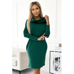 Hřejivé šaty s velkým rolákem a kapsami. Vyrobené z na dotek příjemného silnějšího elastického materiálu v módní zelené barvě. polský výrobek. značka numoco.