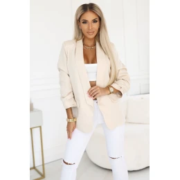 588-2 Dámské klasické sako s nabíranými rukávy - béžové