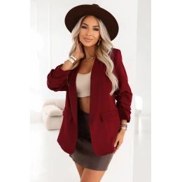 588-4 Dámské klasické sako s nabíranými rukávy - vínové