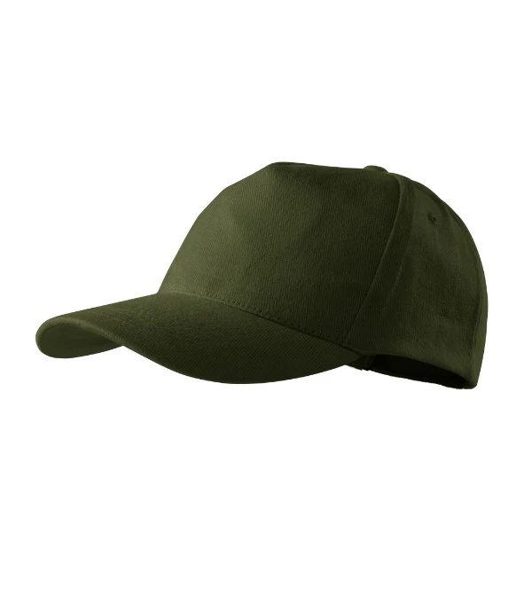 pětipanelový střih vyztužený přední panel prošívaný, lehce prohnutý kšilt obšité větrací otvory potící páska velikost nastavitelná mosazným klipem