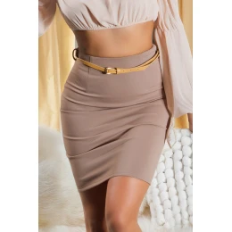 616-1 Přiléhavá sukně s vysokým pasem a páskem - barva cappuccino