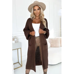 627-2 Cardigan - svetr dlouhý s kapsami - čokoládová barva