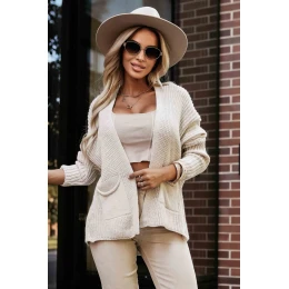 Dámský kardigan z měkkého úpletu s žebrovanými manžetami - béžový