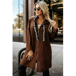 632-2 Ležérní kabát se zipem a módními detaily - čokoládový