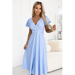 675-1 Midi šaty Blinky s obálkovým výstřihem a brokátovými třpytkami - modré