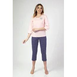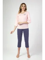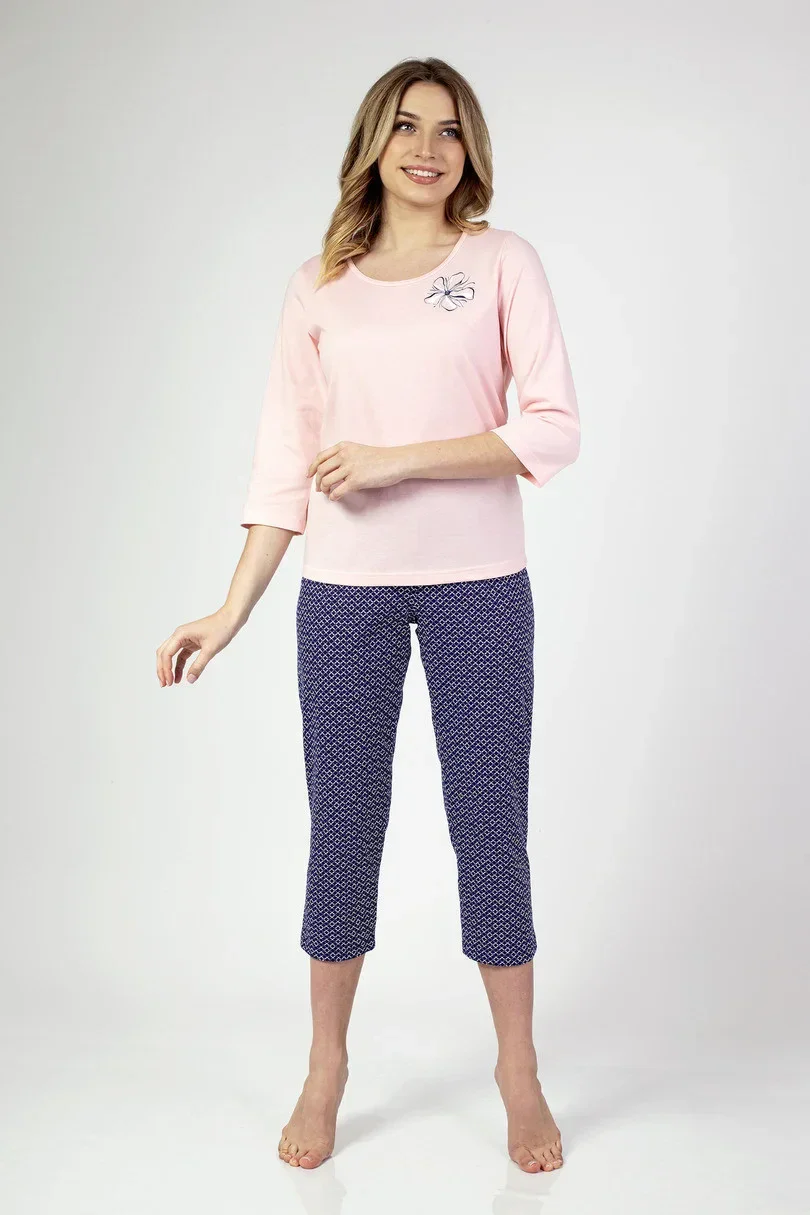 Dámské pyžamo s 3/4 dlouhými rukávy, přední díl zdobený jemným potiskem. 3/4 dlouhé kalhoty jsou součástí balení.