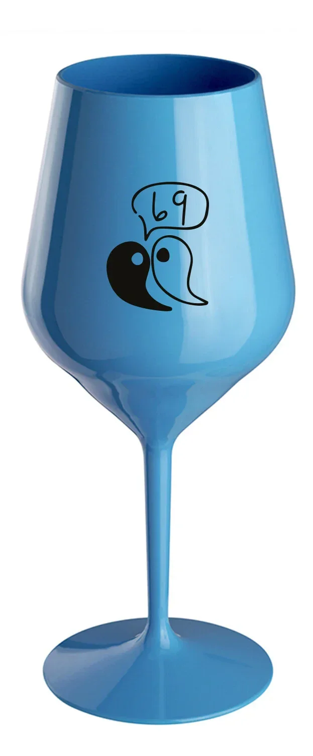 Nerozbitná modrá vinná sklenice s motivem 69 je skvělá na zahradu, pláž, výlet, piknik a parádu udělá i při kempování. Jelikož je vyrobená z kvalitního polykarbonátu je de facto nerozbitná. Je to luxusní kousek, s nímž si víno můžete vychutnat prostě kdekoliv. Mají ergonomický tvar, který příjemně padne do ruky a protože je lehká, usnadňuje to její přenášení. Je snadno skladovatelná a lehce se čistí. Díky svému designu si s ní můžete vychutnat doopravdy kdekoliv bezproblémové pití výborného vína.