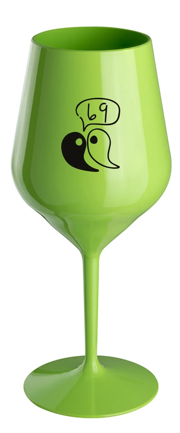 Nerozbitná zelená vinná sklenice s motivem 69 je skvělá na zahradu, pláž, výlet, piknik a parádu udělá i při kempování. Jelikož je vyrobená z kvalitního polykarbonátu je de facto nerozbitná. Je to luxusní kousek, s nímž si víno můžete vychutnat prostě kdekoliv. Mají ergonomický tvar, který příjemně padne do ruky a protože je lehká, usnadňuje to její přenášení. Je snadno skladovatelná a lehce se čistí. Díky svému designu si s ní můžete vychutnat doopravdy kdekoliv bezproblémové pití výborného vína.