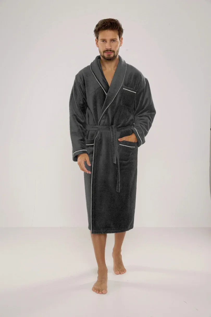 Pánský froté župan se zavazuje v pase.