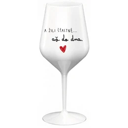A ŽILI ŠŤASTNĚ AŽ DO DNA - bílá nerozbitná sklenice na víno 470 ml