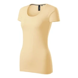 strečový materiál udržující stálost tvaru přiléhavý střih s bočními švy hlubší kulatý výstřih úzký lem průkrčníku z žebrového úpletu 1:1 s 5 % elastanu vnitřní část průkrčníku začištěna kontrastní páskou zpevnění ramenních švů páskou krátké přiléhavé rukávy dekorativní prošití