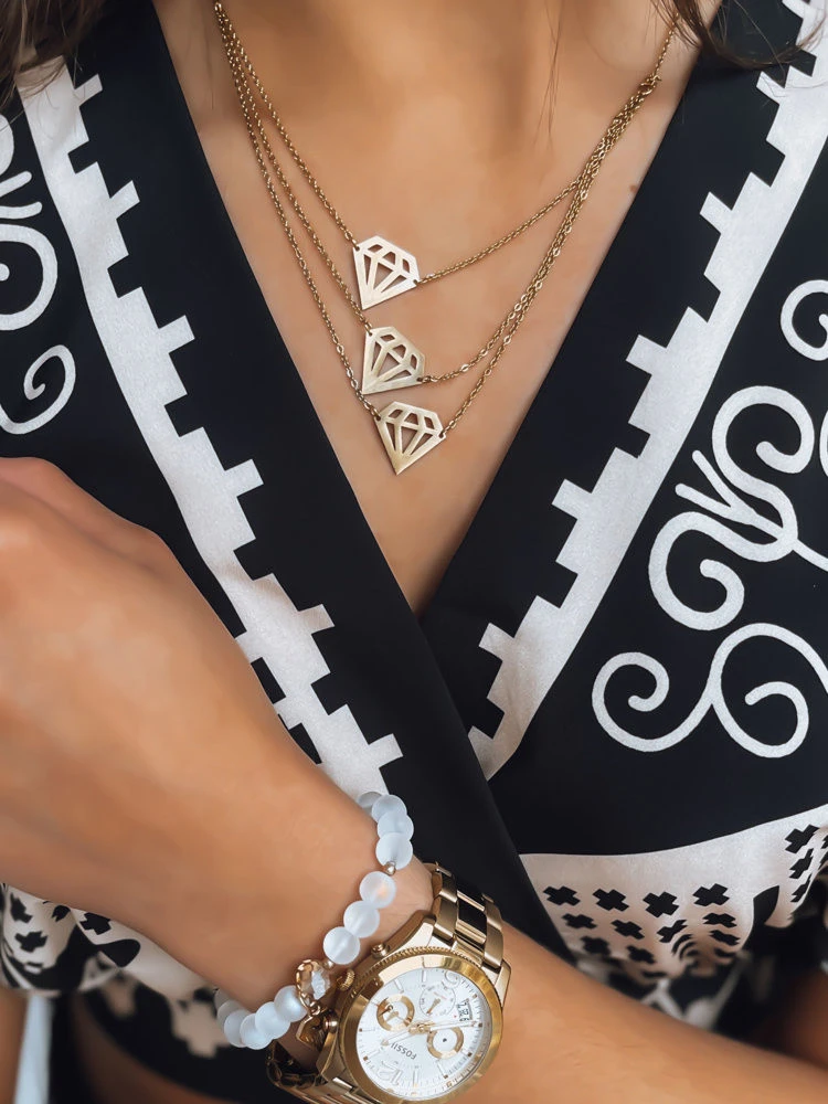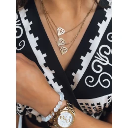 Tento třídílný řetízek je neobvyklou kompozicí, která elegantně spojila tři motivy a vytvořila tak jedinečné umělecké dílo, které potěší jak svou estetikou, tak významem. Tato ozdoba bude ideální pro sportovní i elegantní styling.