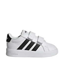 Buty pro děti adidas Grand Court 3.0 Infants białe HP3534 Buty adidas zaprojektowano z myślą o ruchliwych maluchach. Syntetyczna cholewka. Tekstylna wyściółka. Praktyczne zapięcie na rzep. Tekstylny język. Jednoczęściowa podeszwa środkowa z pianki EVA. Gumowa podeszwa zewnętrzna.